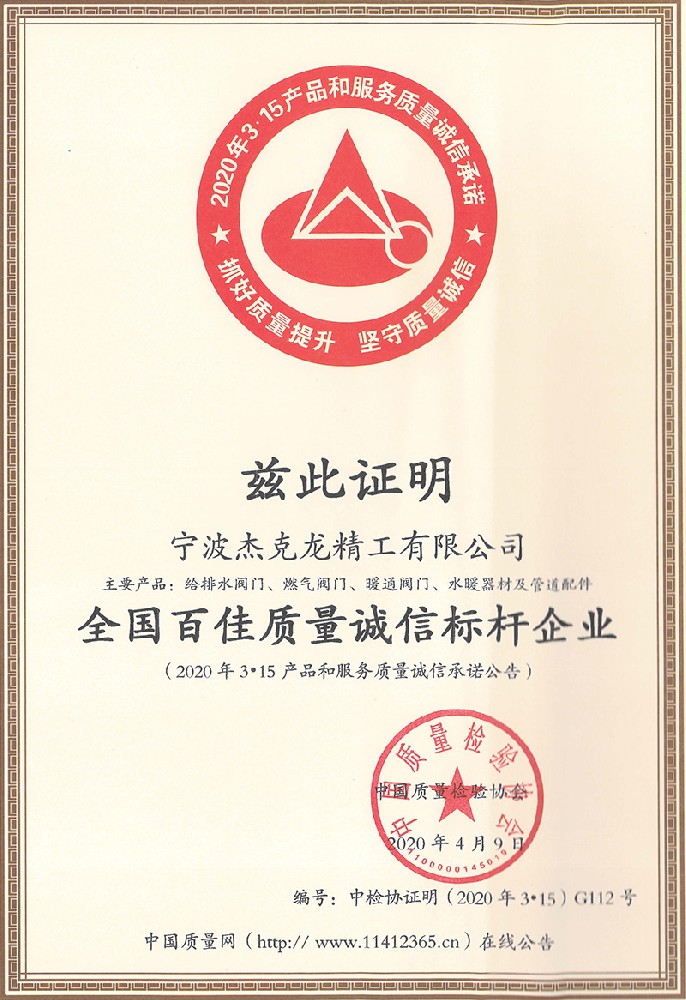 2018年11月8日,杰克龍精工公司正式獲得由浙江制造國際認證聯盟和杭州漢德質量認證服務有限公司聯合簽發的《浙江制造認證證書》。